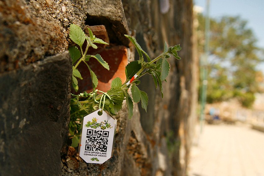 This census involved drawing and taking measurements, which are posted to a project website. Tags with QR codes leading to the site were tied to the weeds. The stalks of the weeds were painted to mimic the identifying stripes on the censused trees.